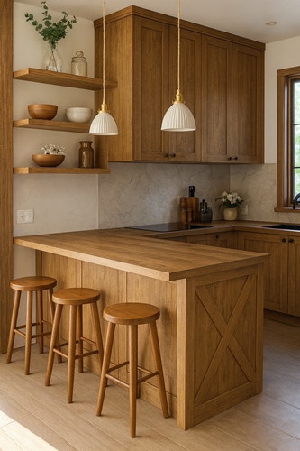 - Zadbaj o oświetlenie – lampa nad półwyspem to element zarówno funkcjonalny, jak i dekoracyjny.