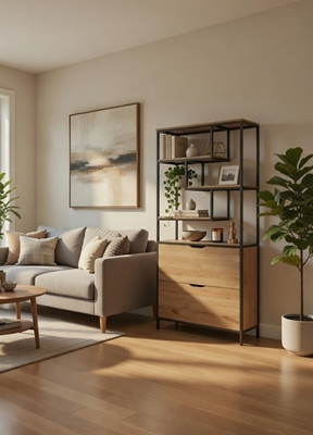 Regał asymetryczny z szufladami: Nowoczesny design i funkcjonalność