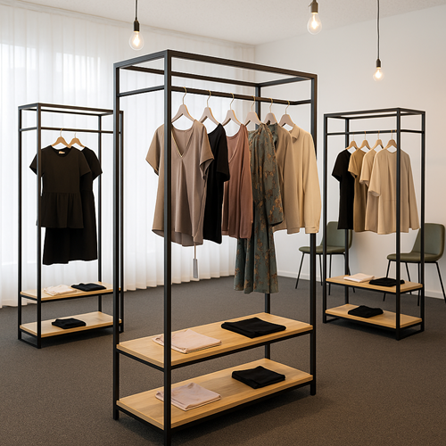 Wieszaki stojące dostępne są w naszej firmie w wielu wariantach stylistycznych, od klasycznych drewnianych modeli po nowoczesne. Dzięki temu łatwo dopasować je do charakteru wnętrza. Taki regał sklepowy odzieżowy z pewnością spełni wszystkie Twoje oczekiwania.