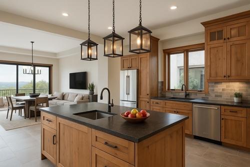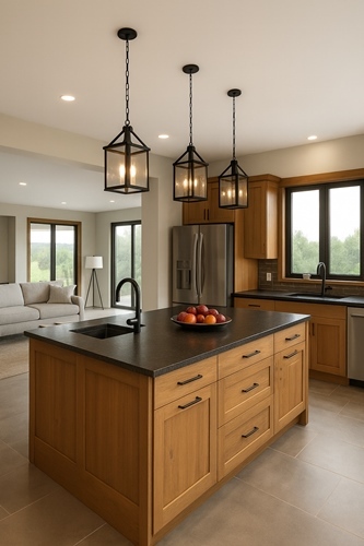 Taki mebel to szczyt luksusu w aranżacji jeśli chodzi o meble do kuchni. Wykonana może być z litego drewna dębowego lub jesionowego. Wymiary wyspy mogą być dowolne od 120×70 cm i nawet do 300×150 cm. W tej dużej opcji wyspy pozwalają także na integrację z piekarnikiem, zlewem, hokerami i dużą ilością szafek i szuflad. Mebel wykonany z litego drewna zapewni nośność na ciężki kamienny blat.